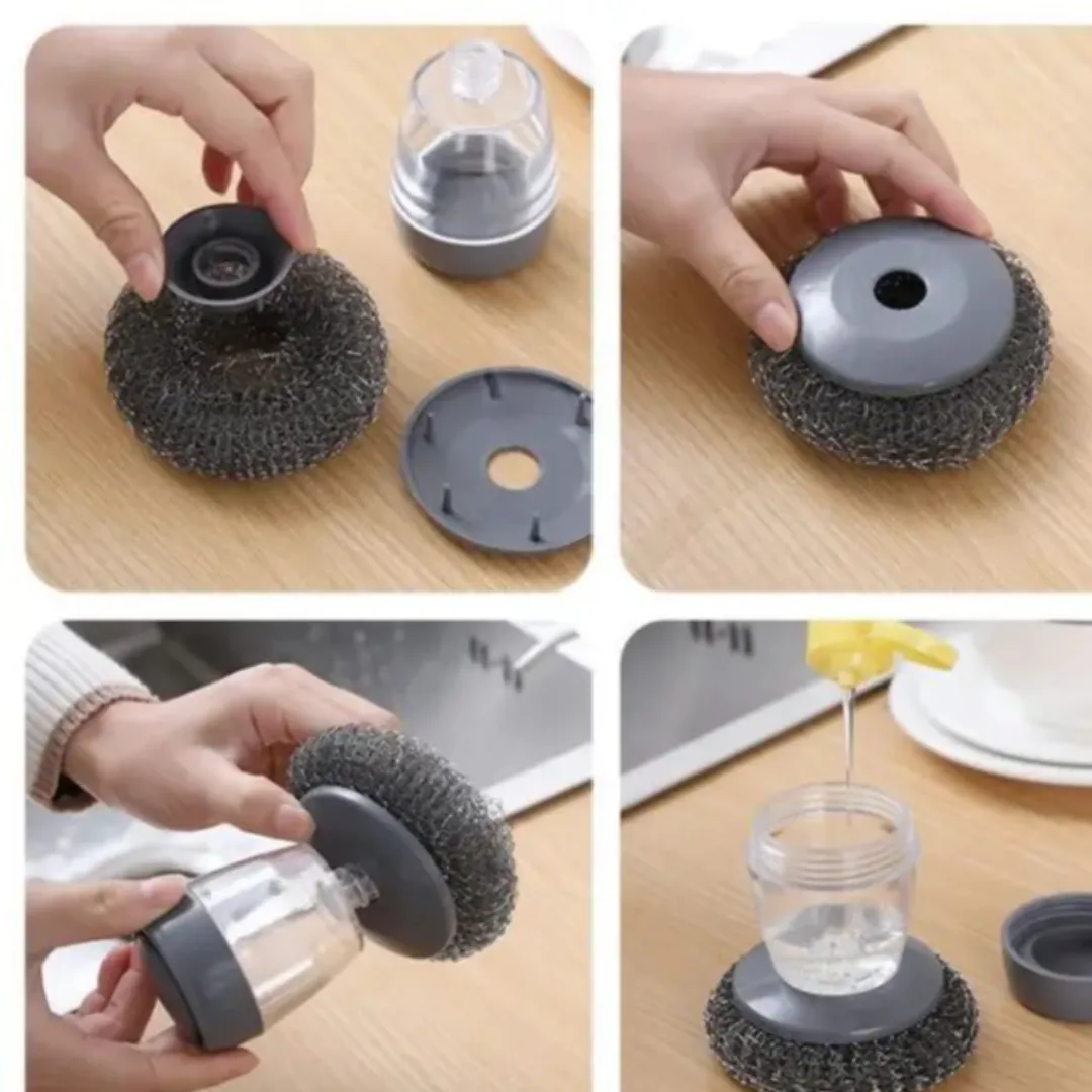 The self dispensing cleaning brush with soap reservoir is very easy to use. Just open the top and add the soap or detergent.