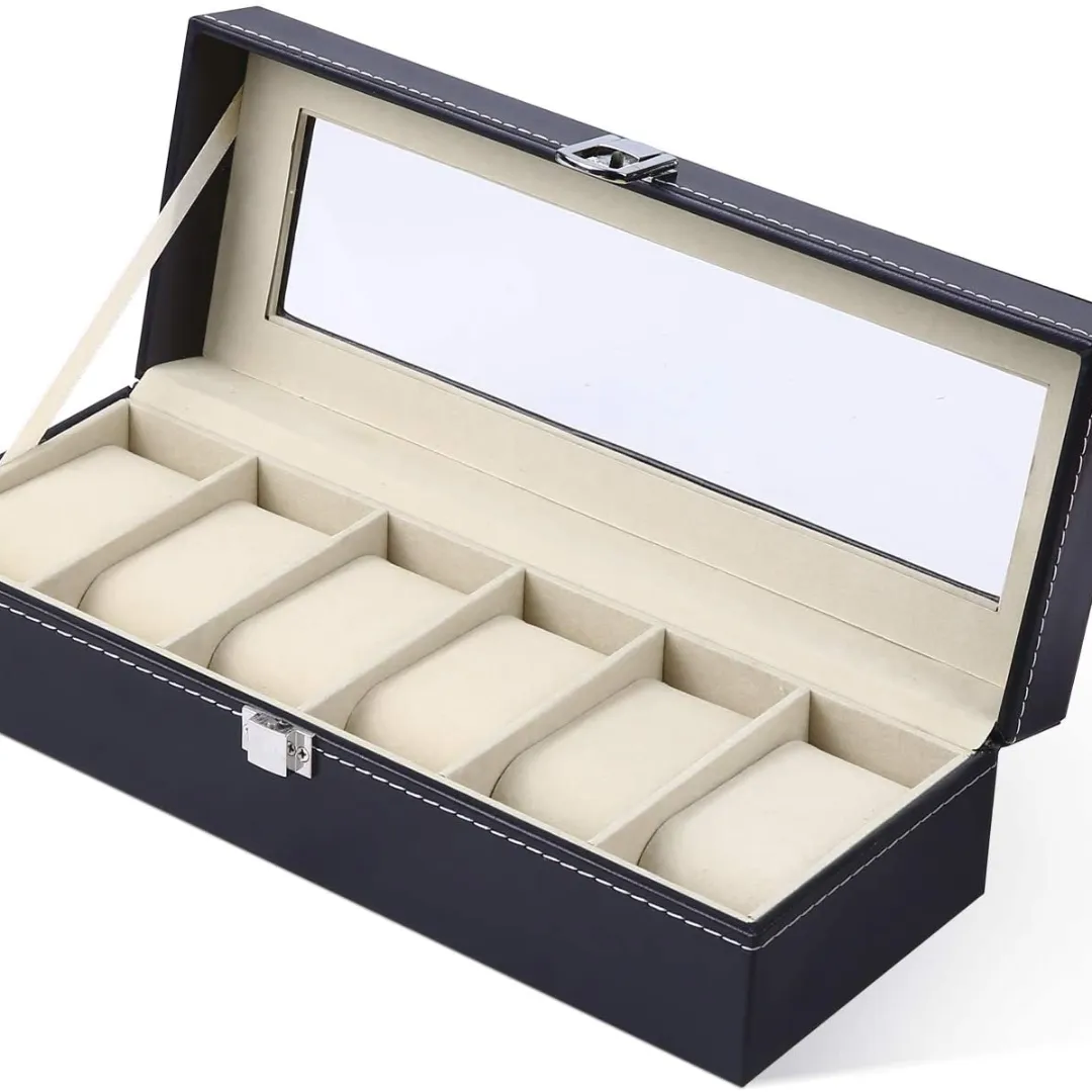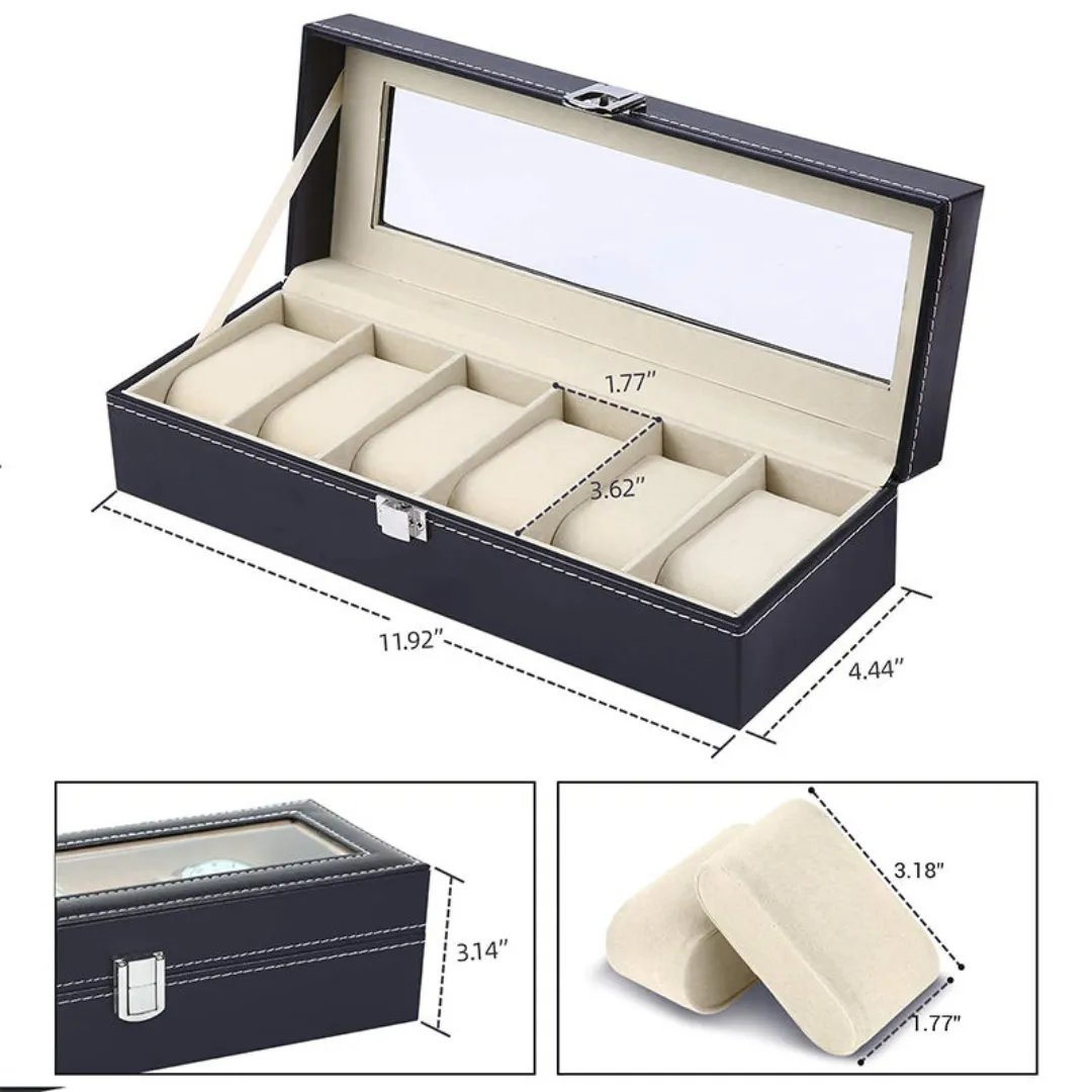 MAXIMUM PROTECTION - Tailor-made for 6 watches, this premium velvet-lined watch box provides a perfect hanger for your beloved watches, keeps them properly stored, and protects them from dust, scratches, and scratches from the outside.