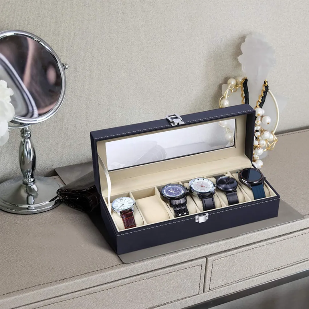 6 SLOTS WITH REMOVABLE CUSHIONS: With six slots, you'll have plenty of room to fit all of your accessories. Cushions store your watches in an upright position and effectively eliminate scratches. Need more room? Simply remove the cushions to create more space.