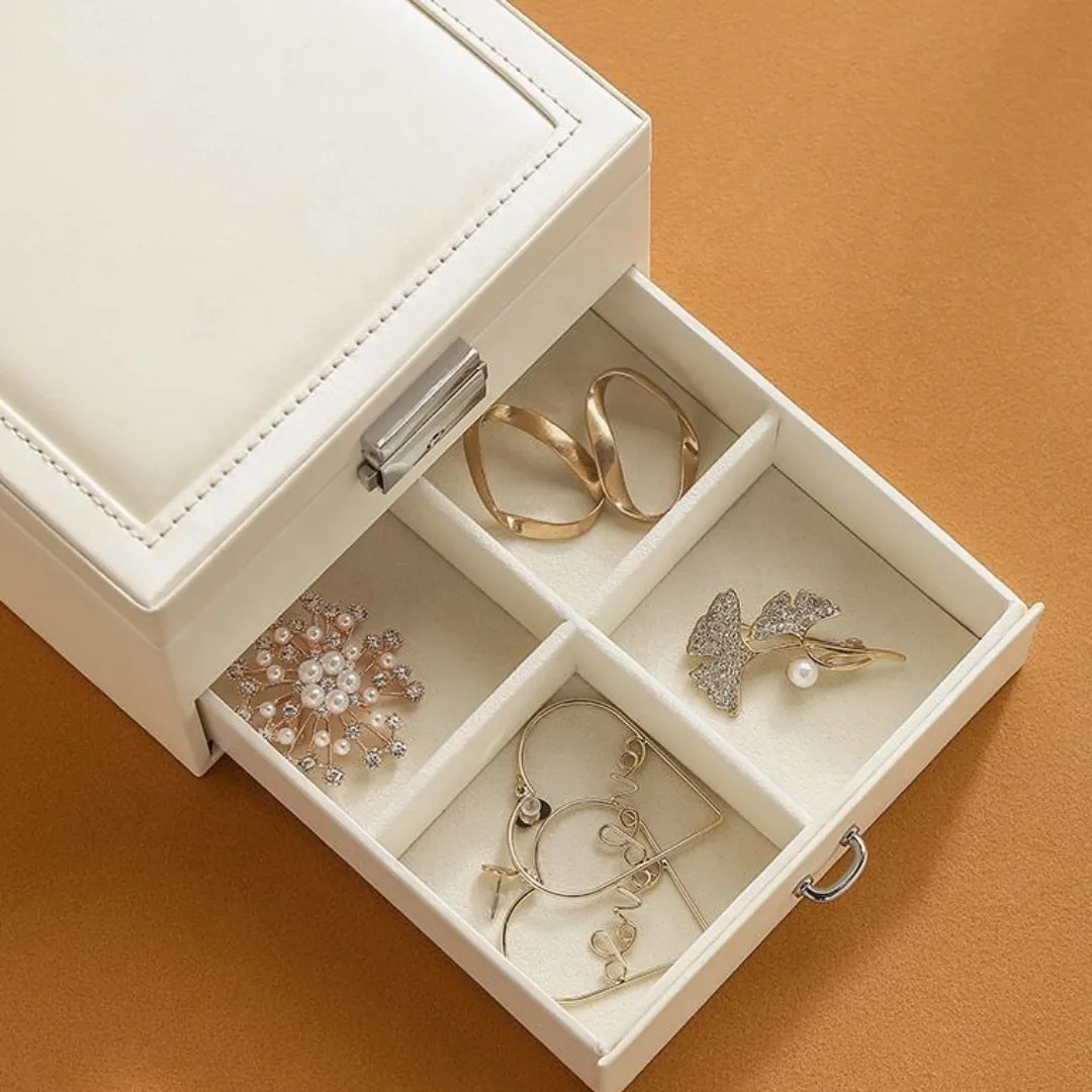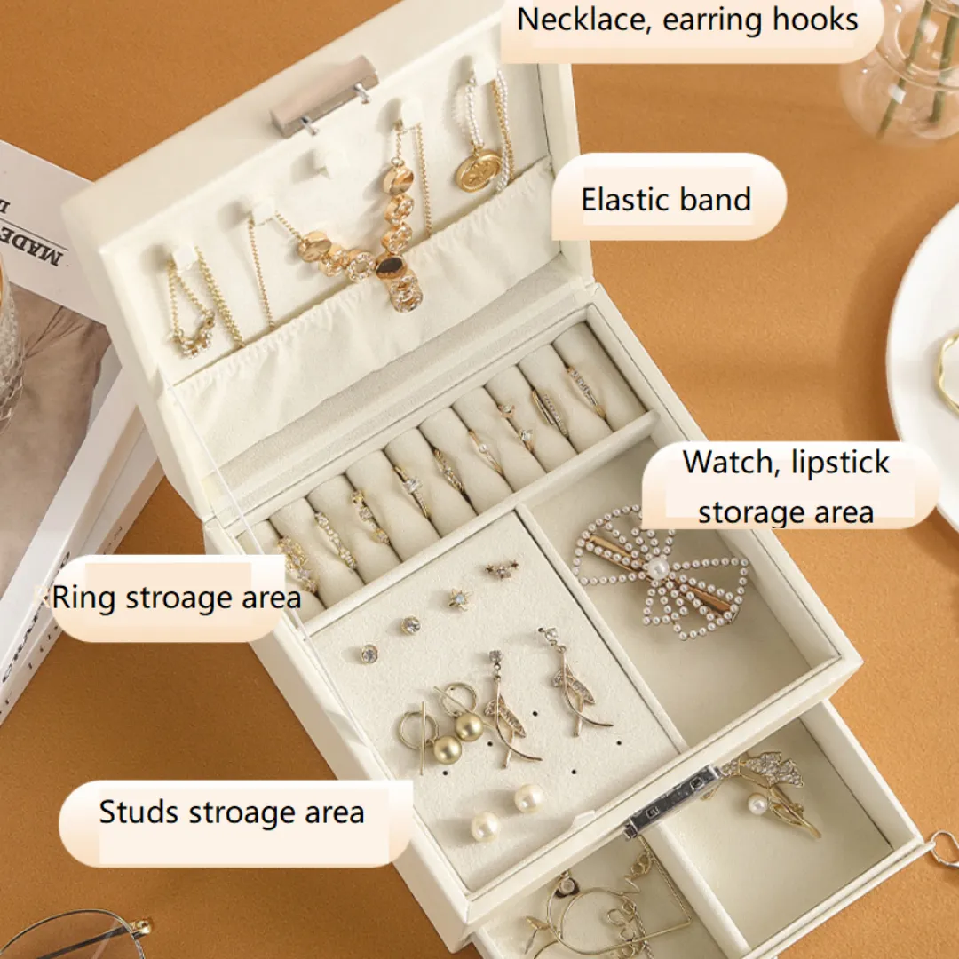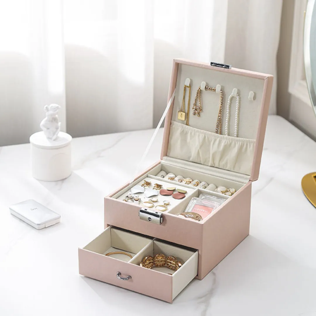❤Organize Your Table. This beautiful jewelry box includes 2 layers with large capacity and comfortable velvet layout. Available to help you get away from mess dressing table.