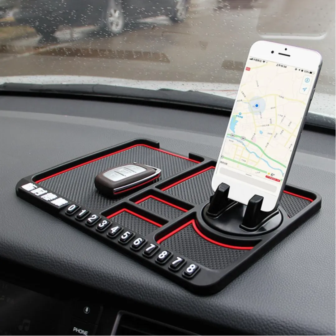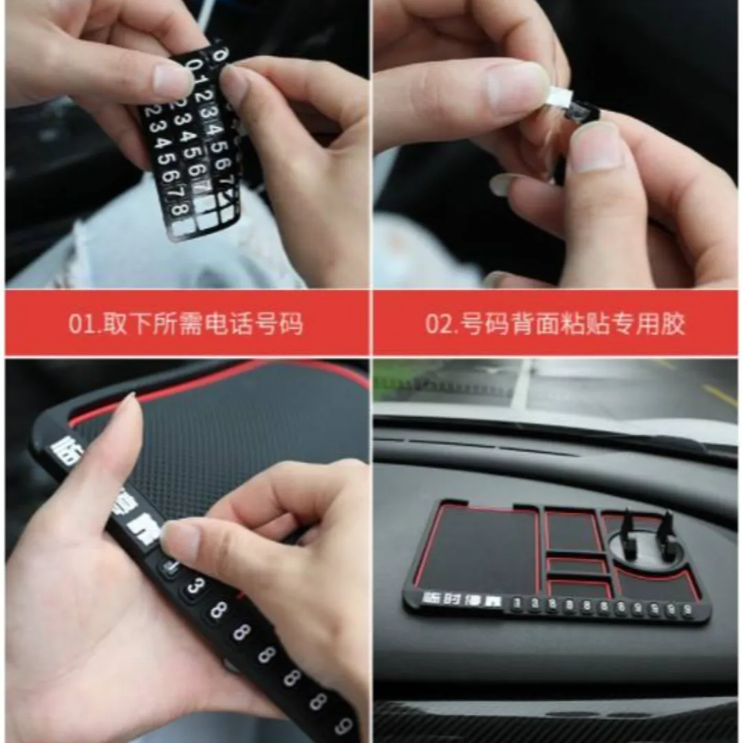 FUNCTION: This product uses multi-function devices. Car phone holder / car storage pad / vehicle temporary parking card / mobile navigation bracket.